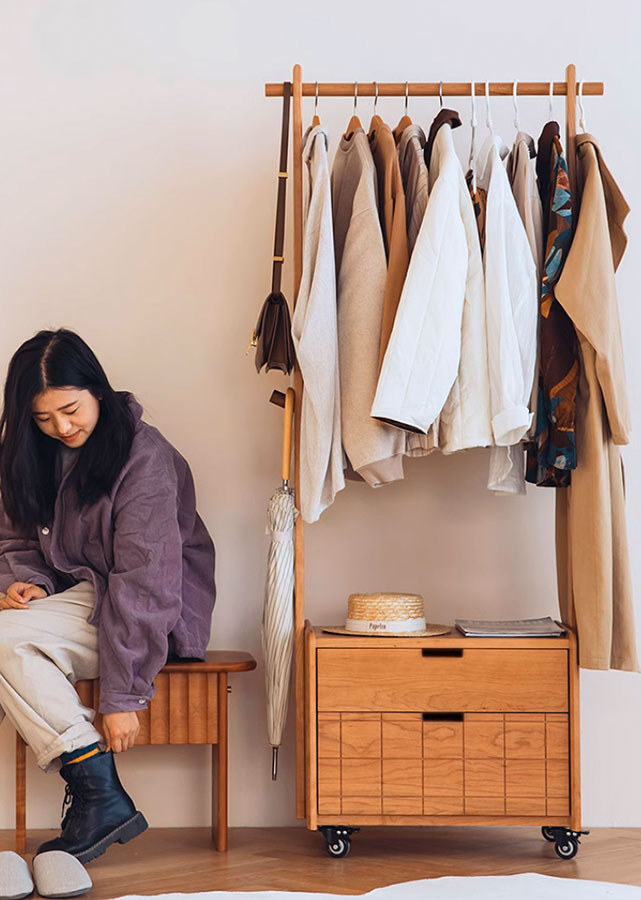 Roues Solid Wood Clothes Rack with Drawers and Wheels