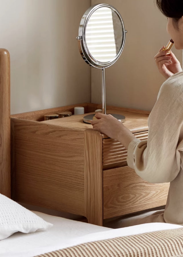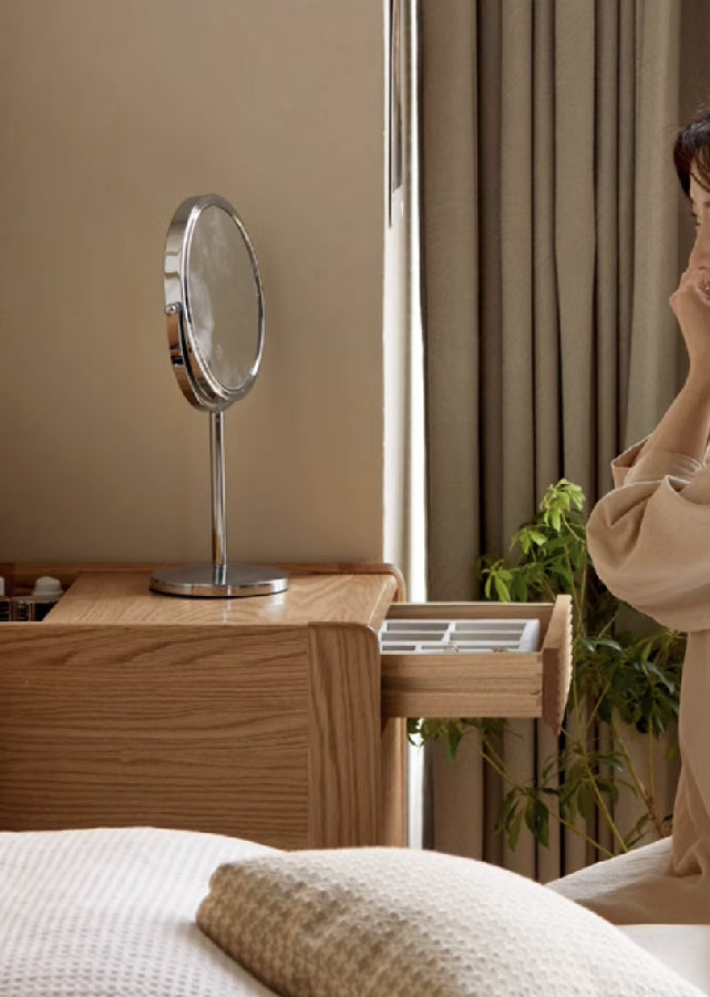 We've had many customers who were searching for a compact dresser, so here it is. At only 40cm in length, this is great for fitting into small rooms. Despite being small, the dresser comes with the functions you'll want -- 2 drawers of different heights for storage, and a deeper open compartment for storing skincare close to your reach.