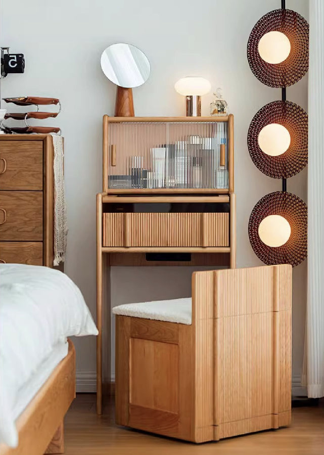 Taking up just 0.25 square metres of floor space, the Nina dresser is a godsend for small homes. Despite is small size, it packs a load of functionalities in its small body. The glass compartment can accommodate skincare bottles up to 25cm high, and the table top can be pulled outwards to give you 40cm of space when you need it.