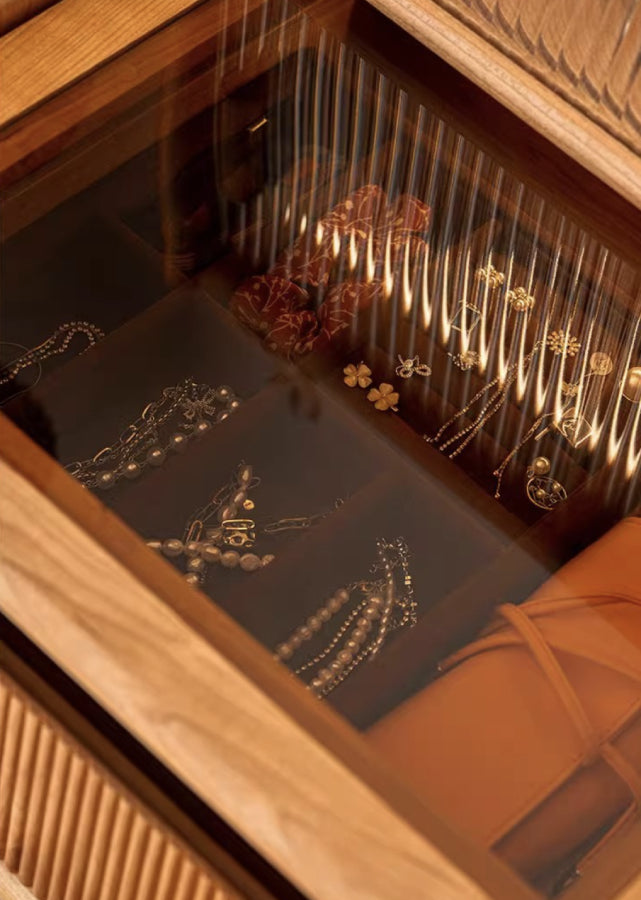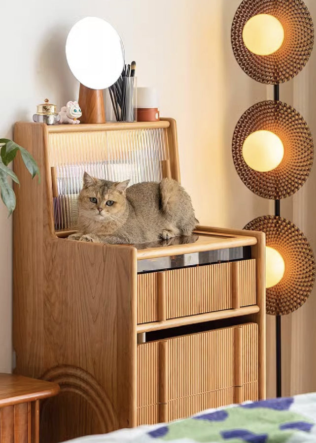 Supplementary material: (Back of dresser, bottom of drawer) E0 grade plywood with cherry veneer; (Side of drawers) Solid beech