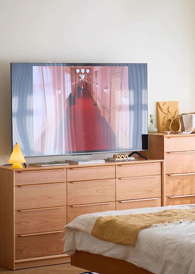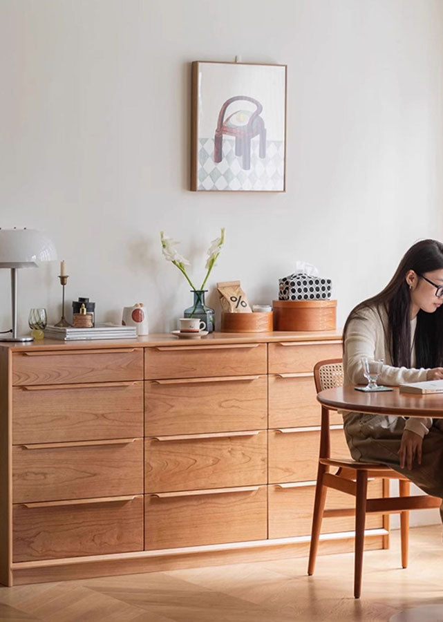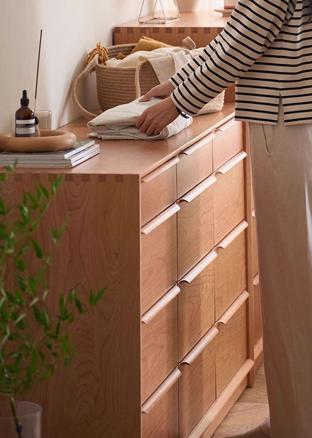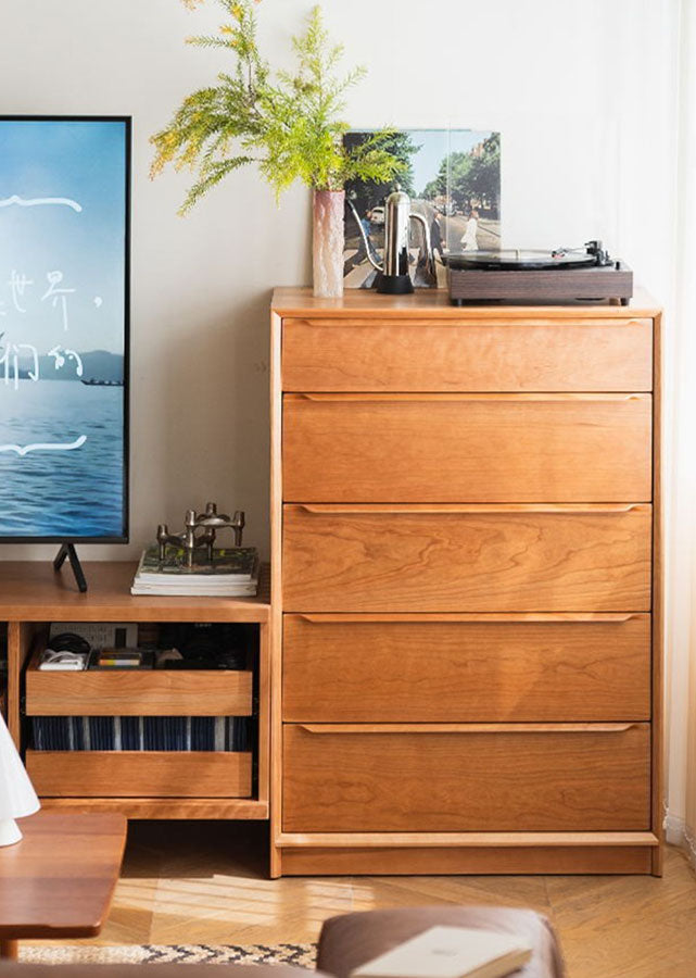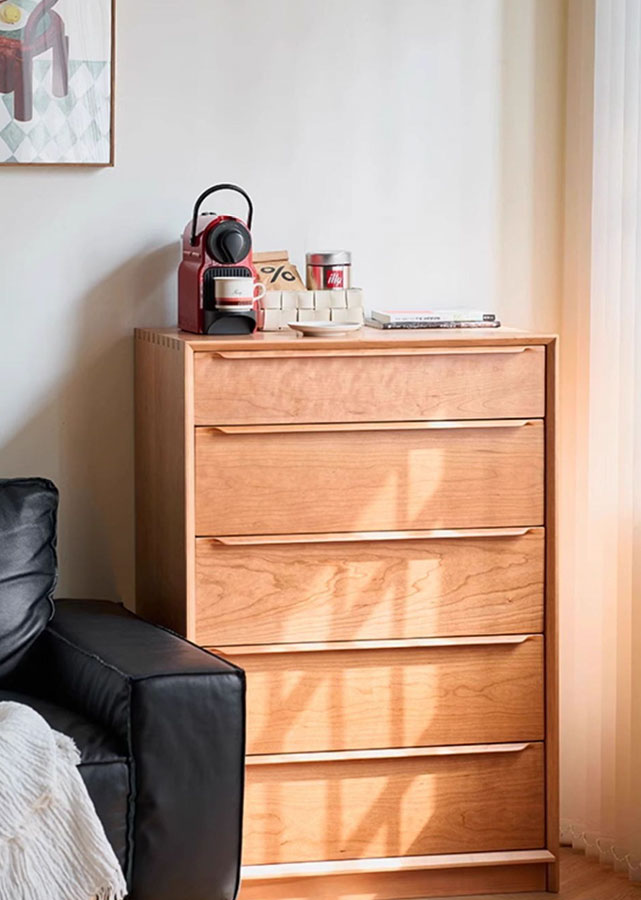 Supplementary material: (Sides of drawers) Solid beech; (Bottom of drawers and back of cabinet) E0 grade plywood with cherry veneer