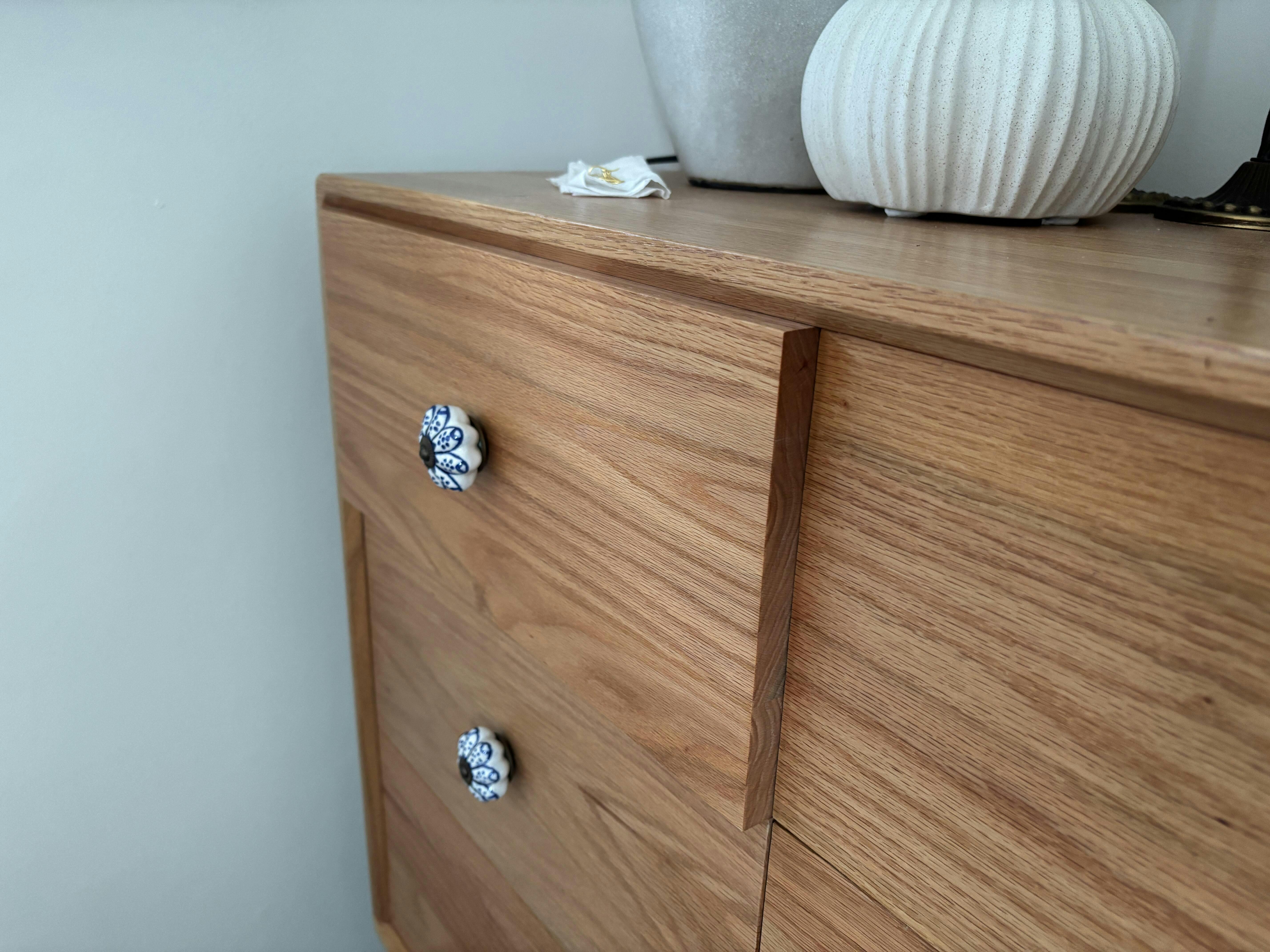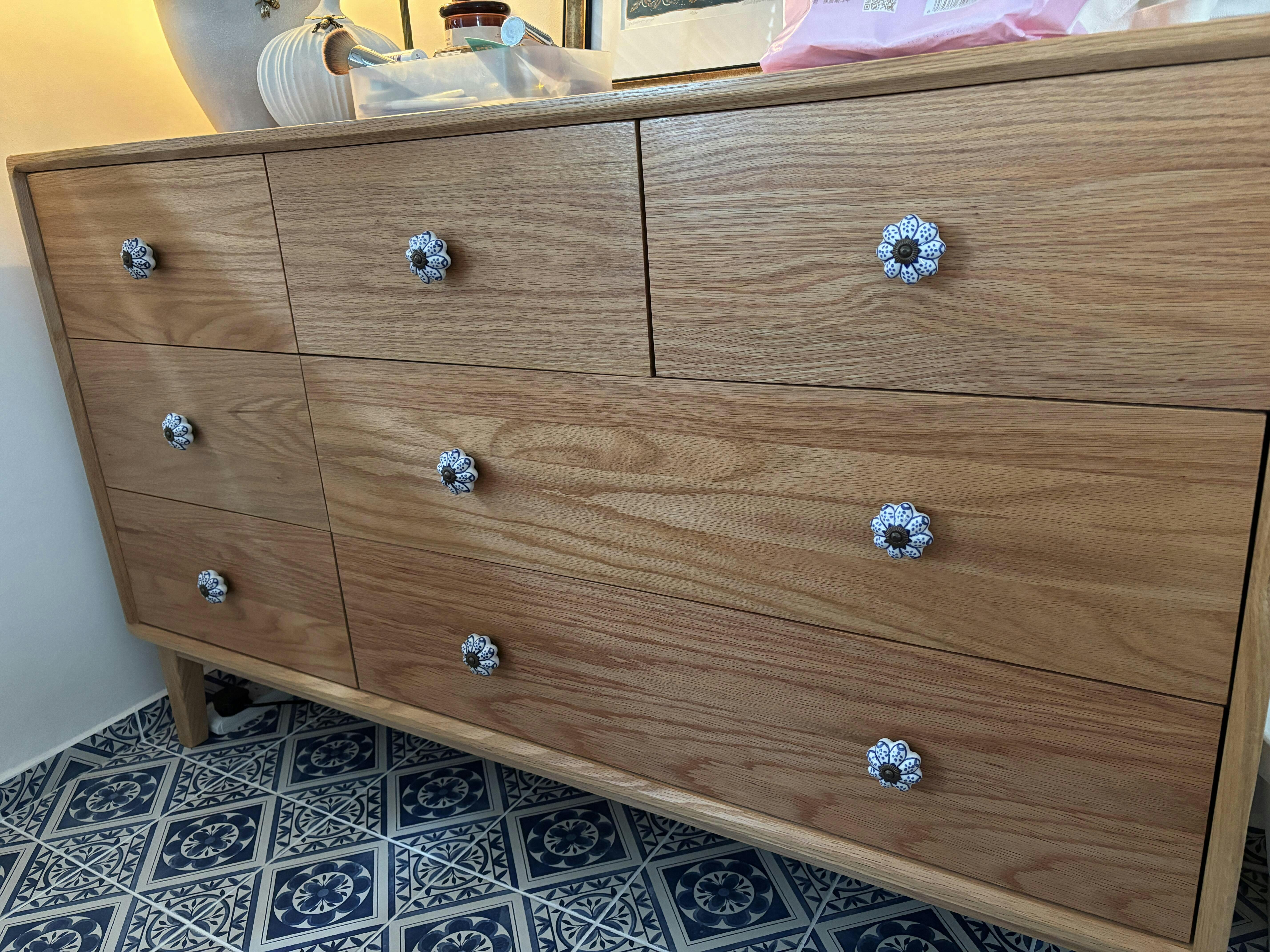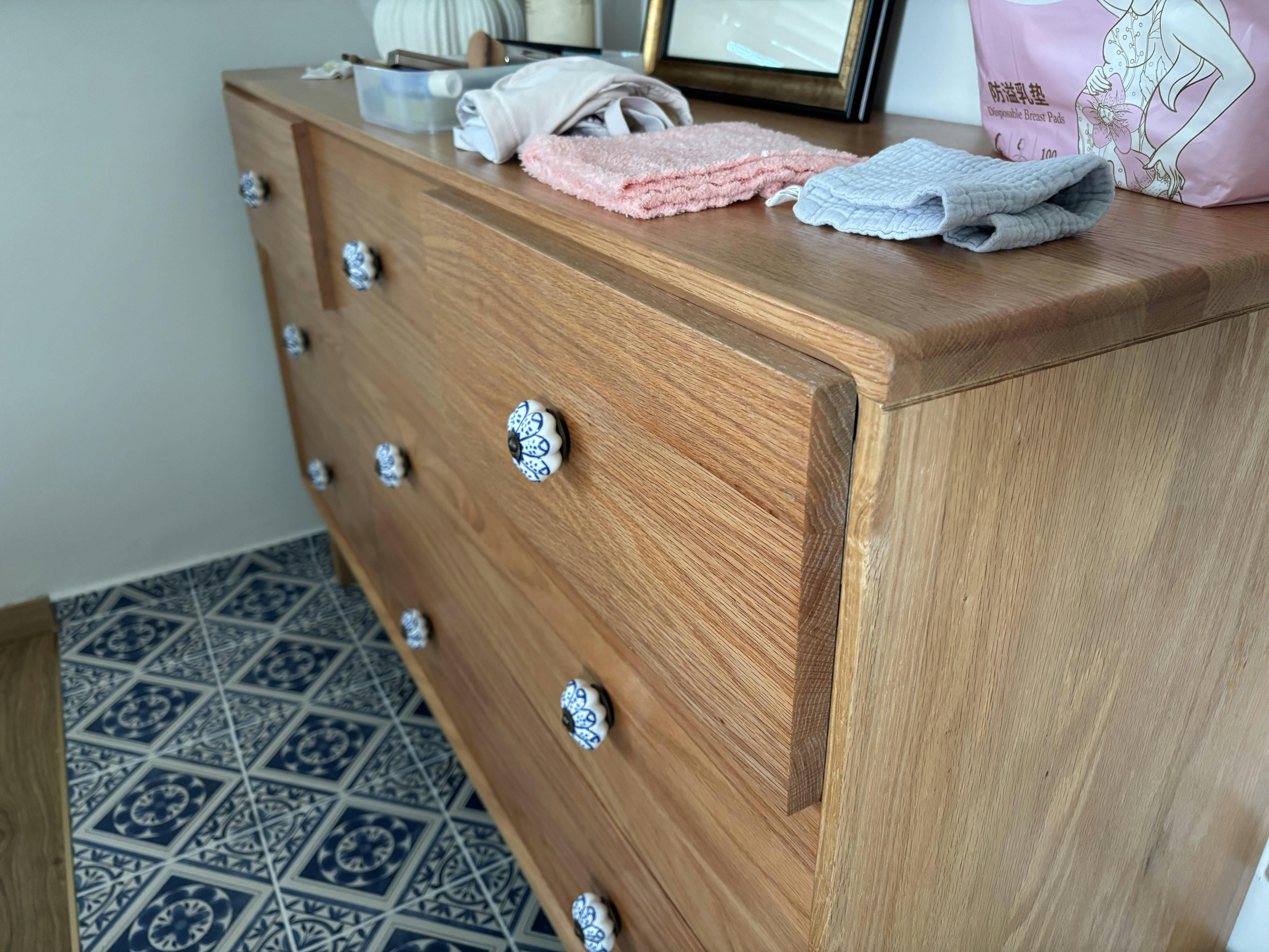 I purchased the Prague Solid Wood Drawer Chest (130x40x81cm) on 26 June 2025. When I received the actual chest of drawers, I was immediately a little disappointed that they had a glossy, reddish-tinted varnish, different from the matte, paler kind of oak wood as expected from the listing images. I also noticed that the wood used on the inside of the drawers were of a poorer quality than the solid wood on the outside, making the drawers a bit stiff when sliding to open and close. I didn’t raise these issues with Nichi Nichi, as I decided I could get used to the chest of drawers, and changed the knobs to match my home décor better.