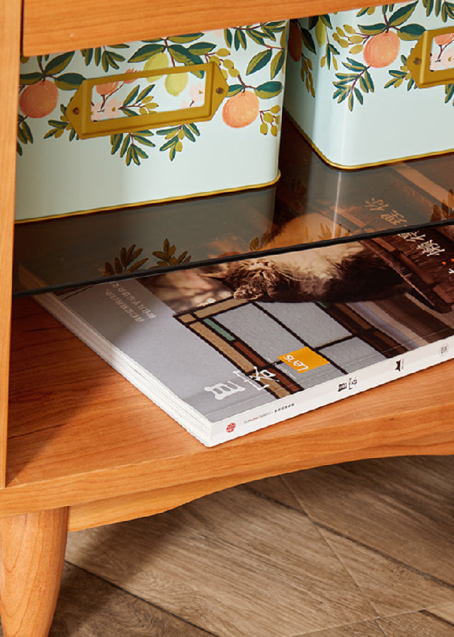 Supplementary Material: (Back of nightstand) E0 grade plywood with cherry veneer; (Shelf inside compartment) Tempered glass