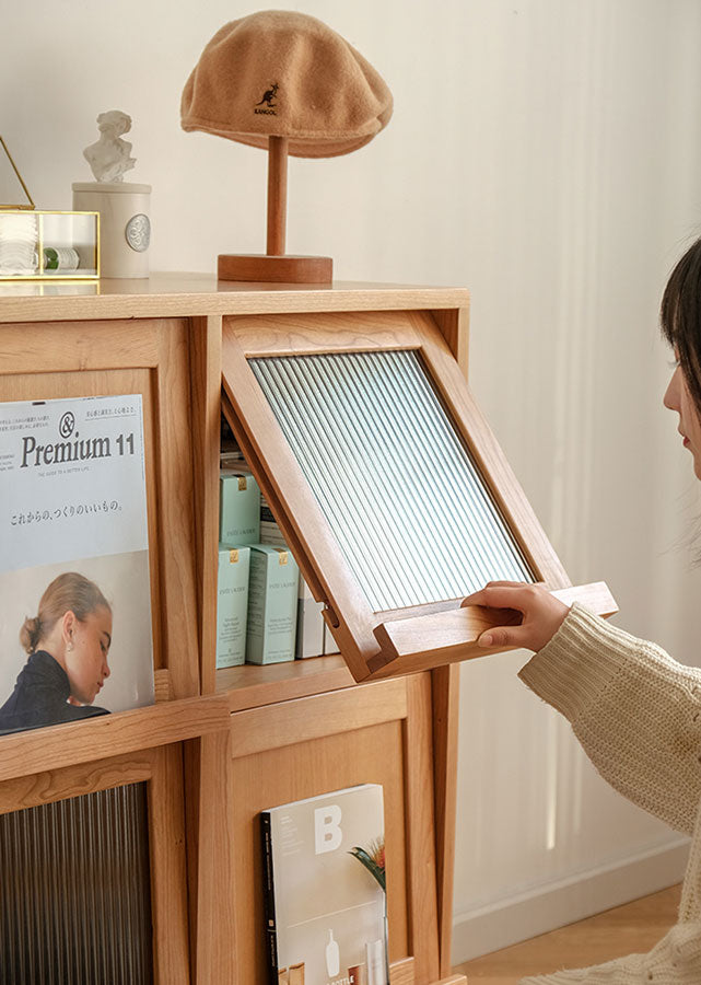 Supplementary material: (Back of sideboard, turn-up door) E0 grade plywood with cherry wood veneer; Indonesian rattan