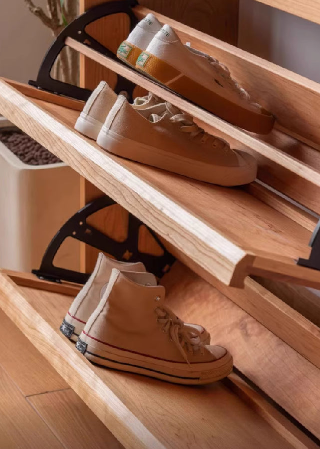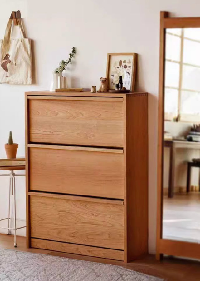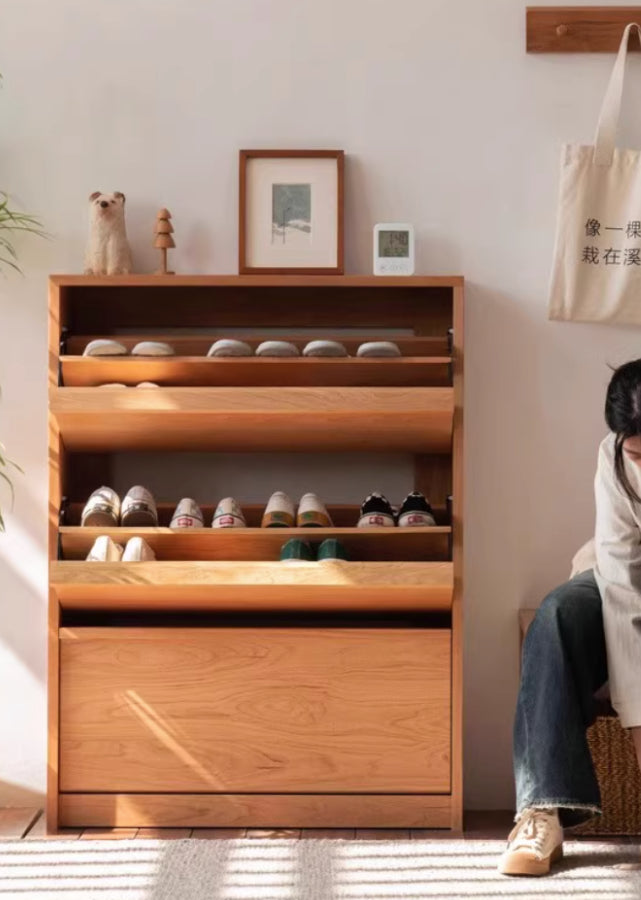 Another variation of the popular ultra thin shoe cabinet, this time with solid wood doors by popular demand.