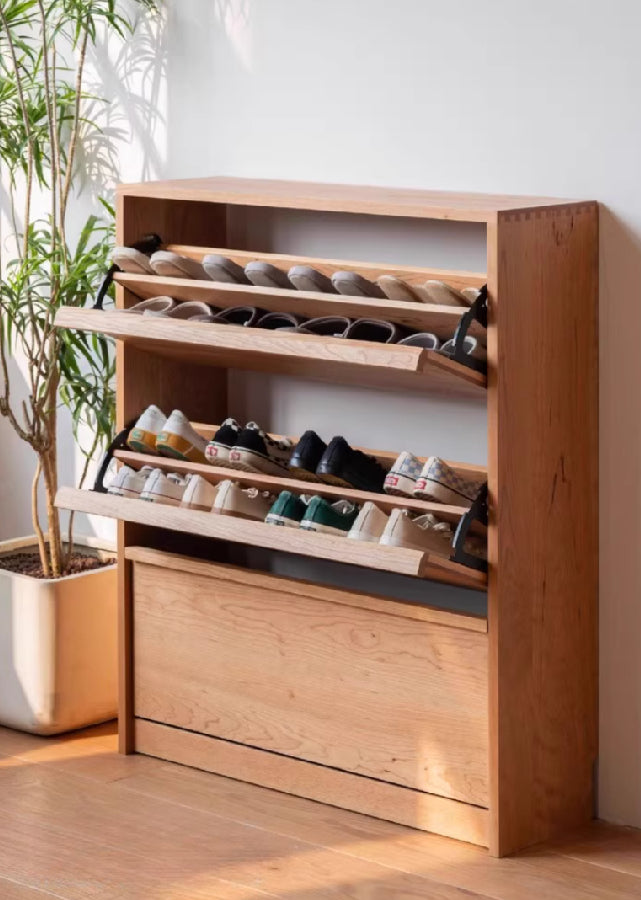 Ultra Thin Solid Wood Shoe Cabinet with Wooden Doors